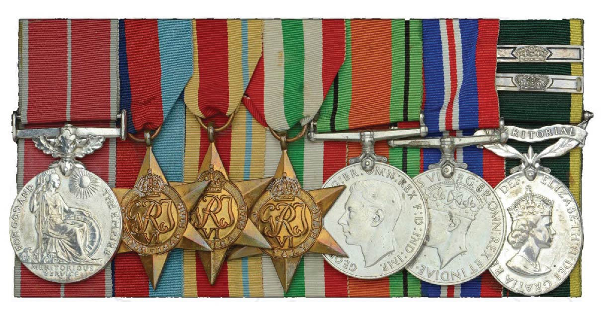 The WW2 medal group of Staff Quartermaster Sergeant Emly appeared for sale at the Dix Noonan Medal Auction in London on 11 December 2019. They were sold for £1800. (Dix Noonan Auction House)